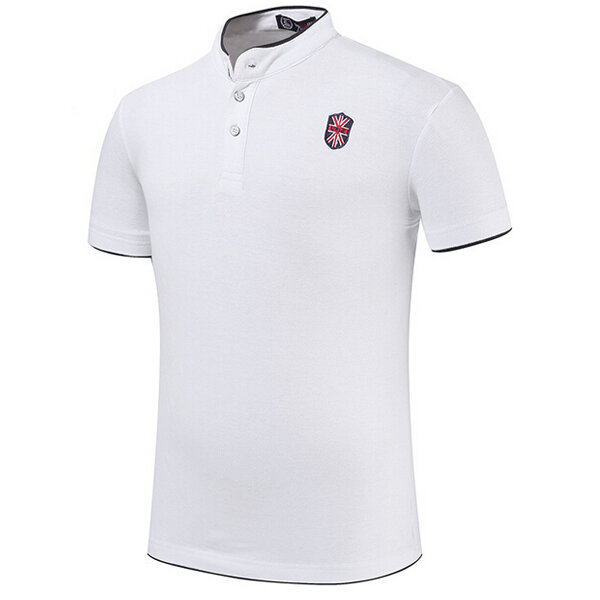 Mens Embroidery Solid Color Stand Collar Button Golf Shirt