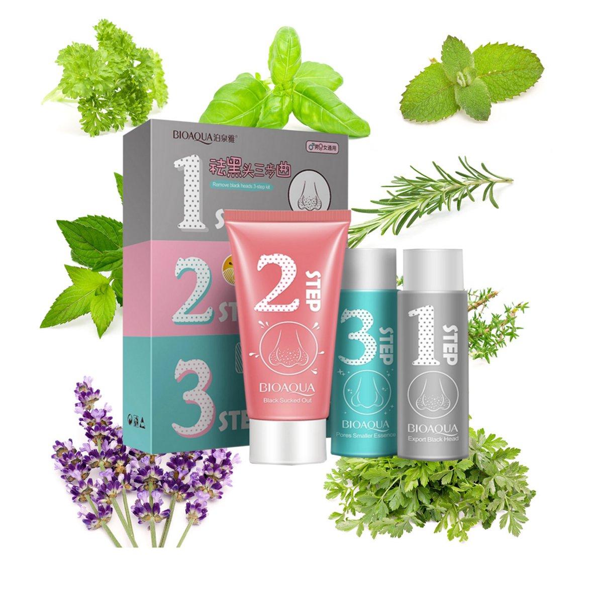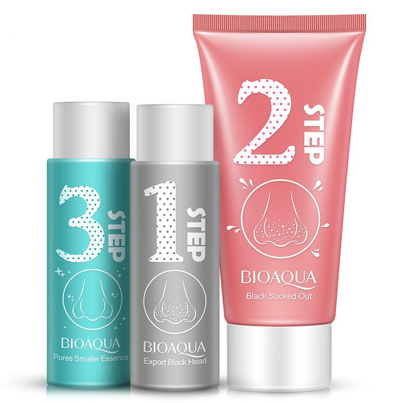 • BIOAQUA 3 Steps Blackhead Remover Nose Mask Pores Smaller Essence Liquid Set Facial Skin Care