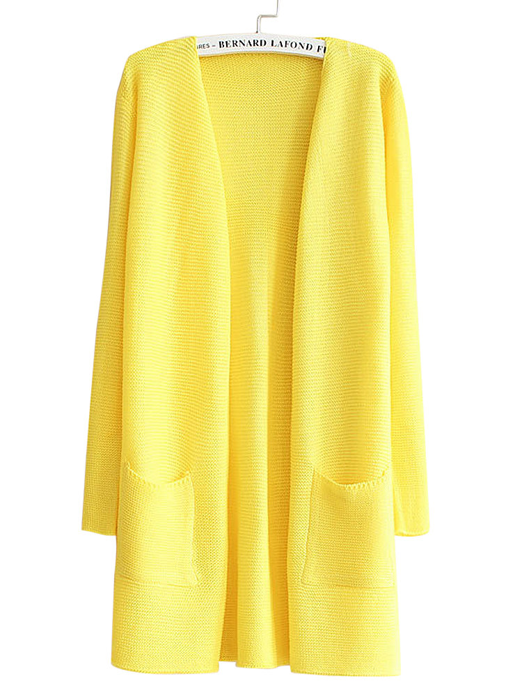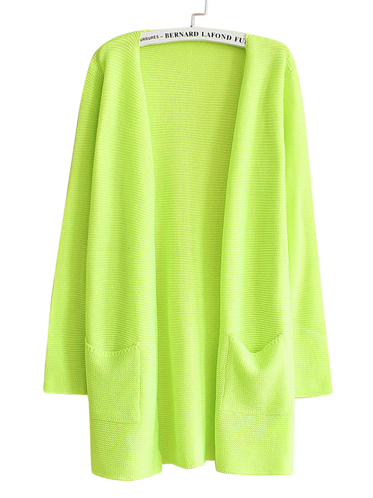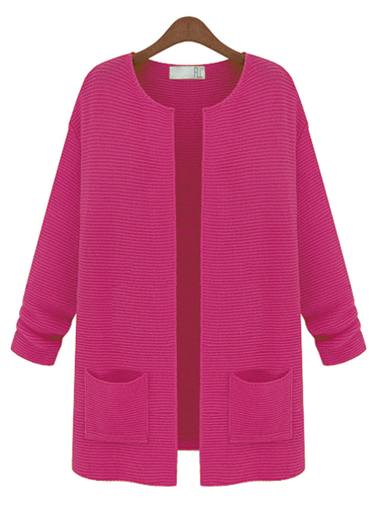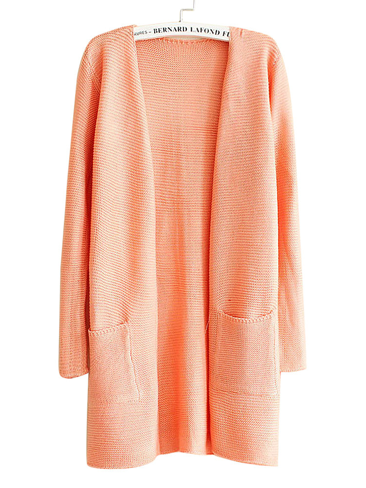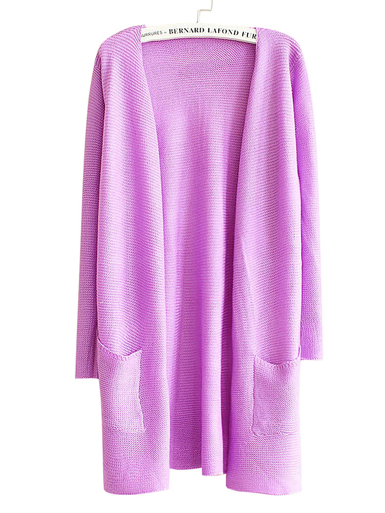 • Candy Color Women Long Sleeve Casual Double Pockets Knit Cardigan