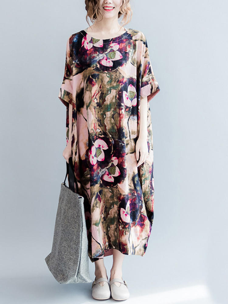 • Casual S-5XL Women Loose Lotus Printing Dress