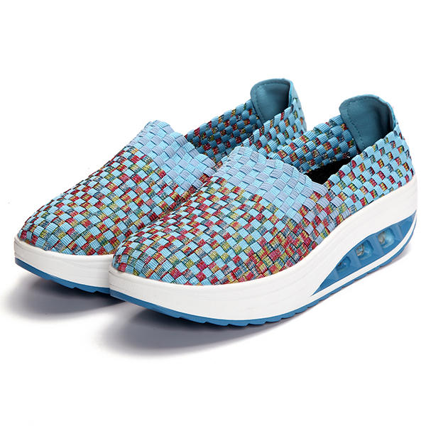 • Colorful Rocker Sole Shoes Handmade Knit Shake Shoes Casual Slip On Sneakers