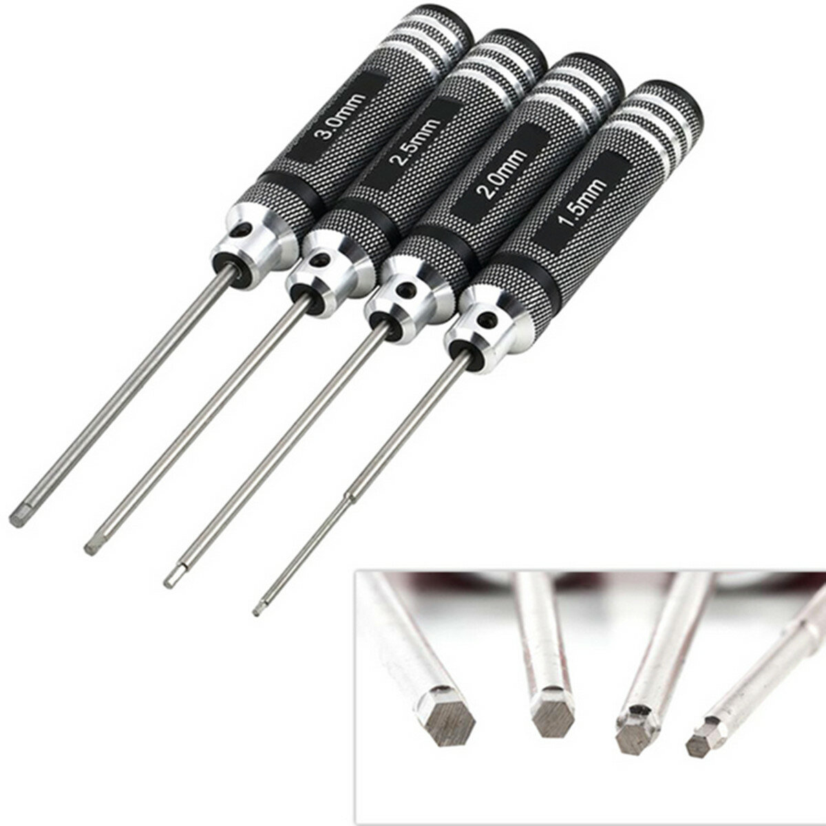 • Drillpro 4pcs Hex Screwdriver Tool Kit 1.5/2.0/2.5/3.0mm Black Repair Tool Set