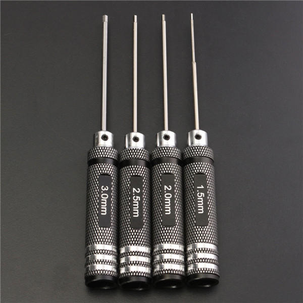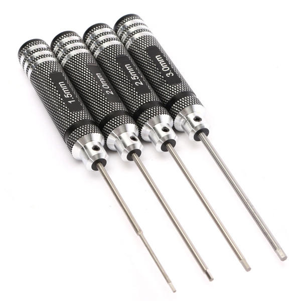 Drillpro 4pcs Hex Screw Driver Tool Kit 1.5/2.0/2.5/3.0mm Black For RC Helicopter Plane Transmitter Car