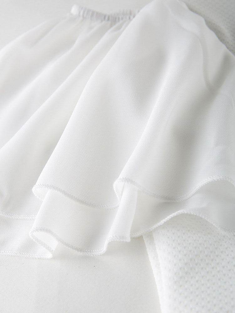 • Elegant Women Off Shoulder Ruffle Chiffon Patchwork A-line Mini Dress