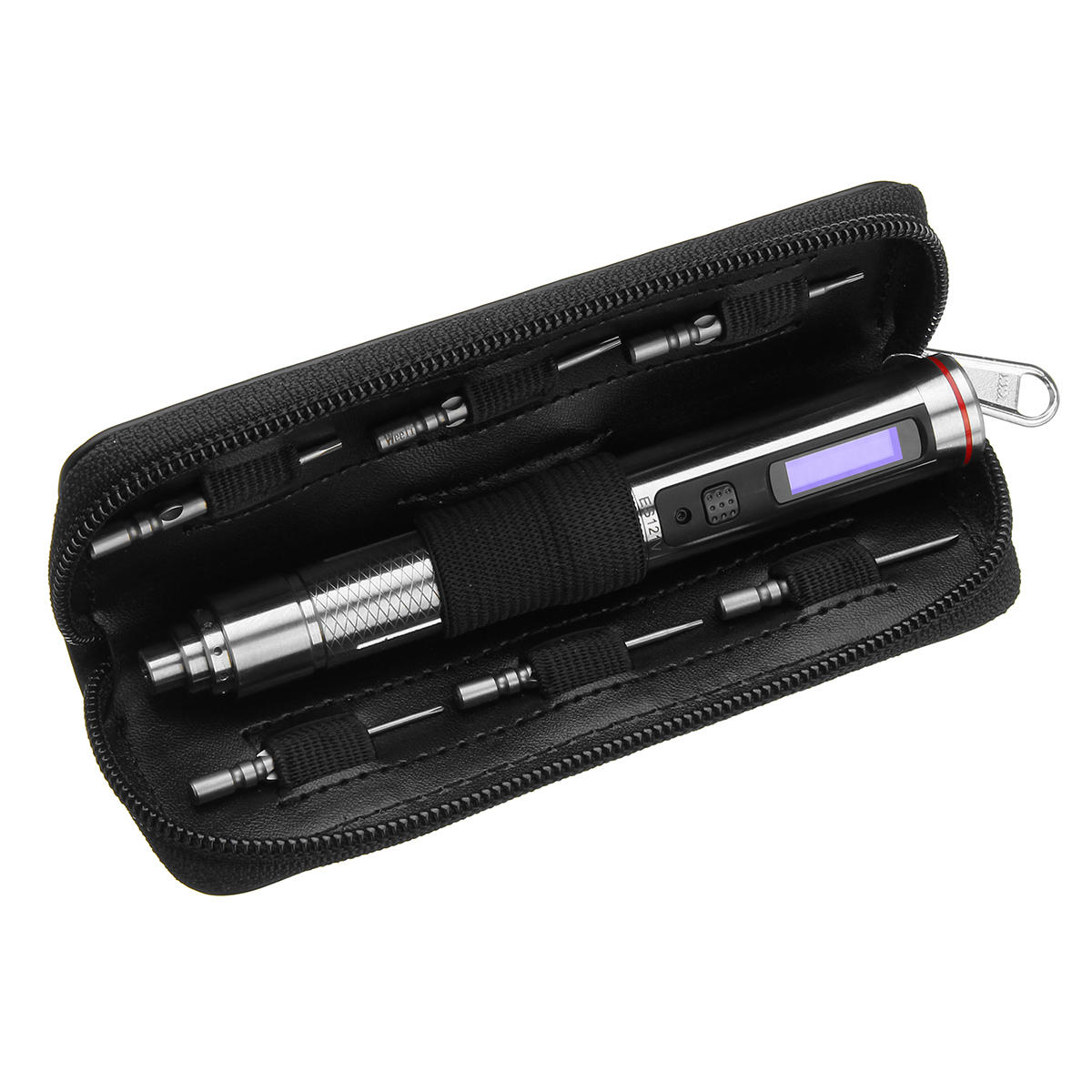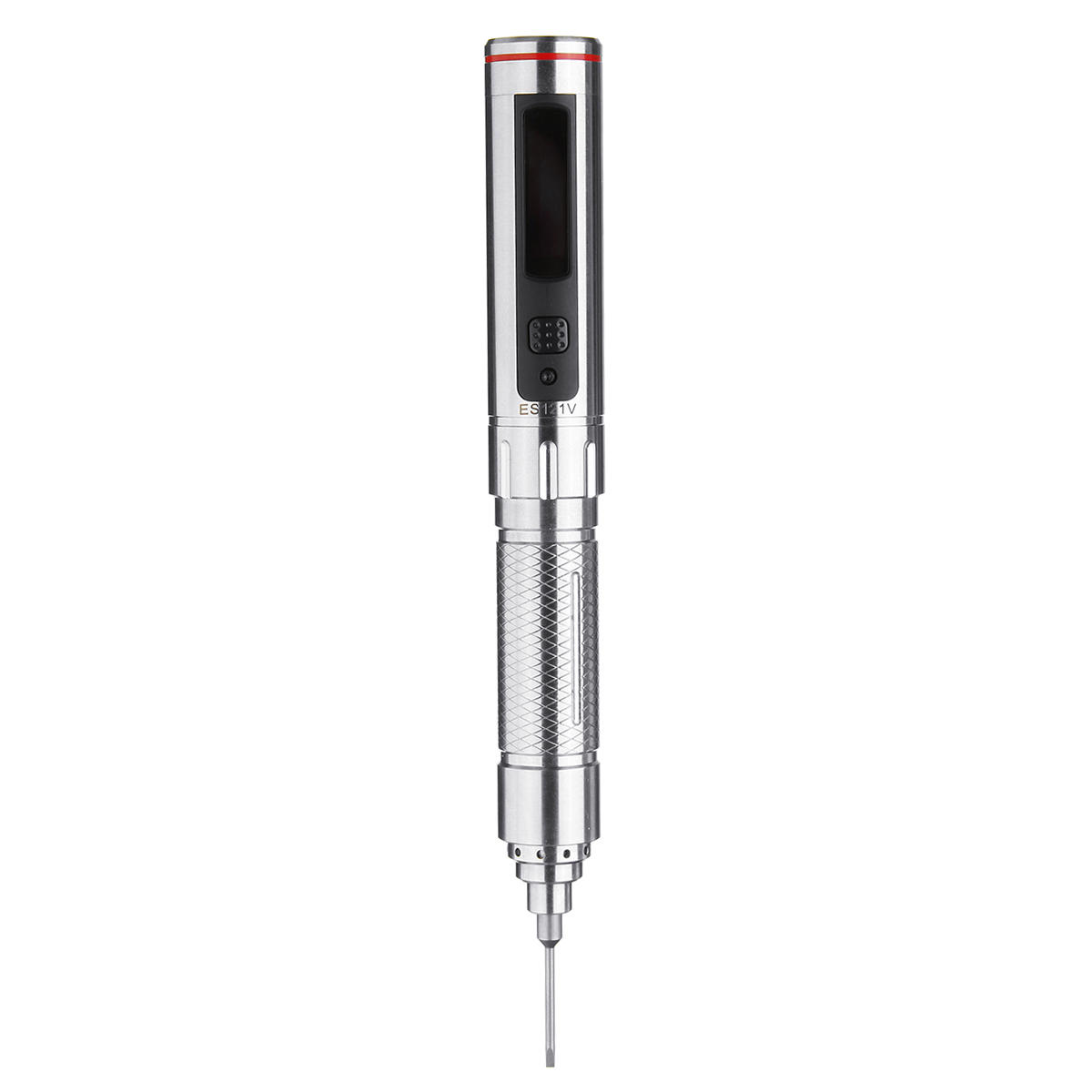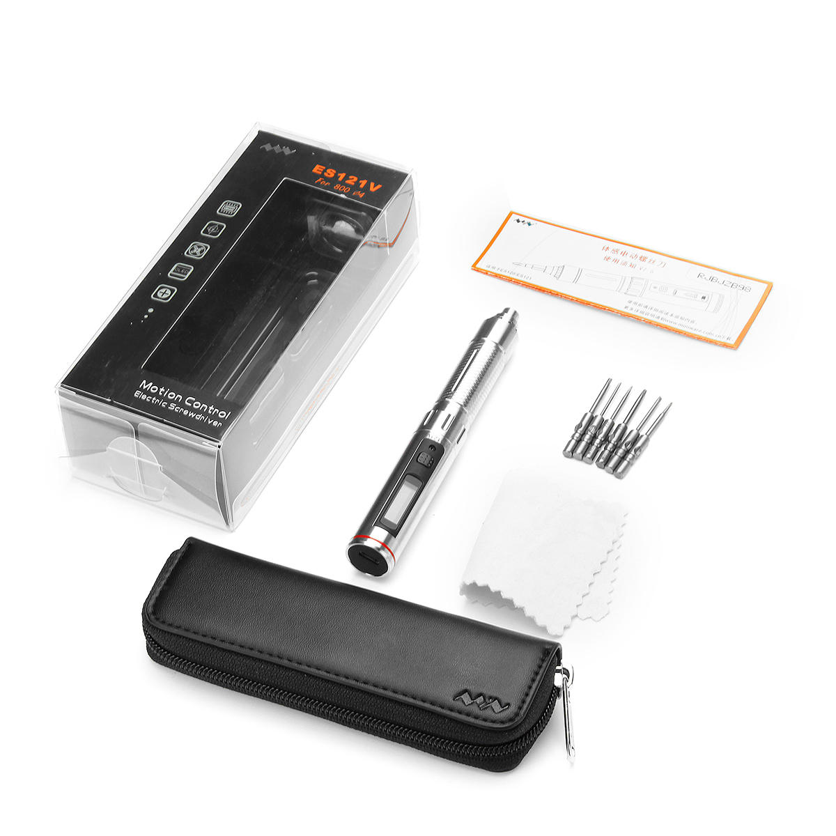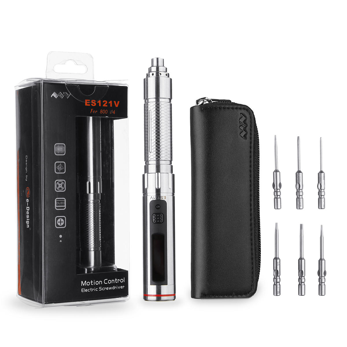 ES121V upgraded version is coming. It is equipped with 1:64 reduction gear motor(ES120 is 1:144) ensure larger rotation speed up to 380 RPM load-free(ES120 is 270RPM) .Slim 304 stainless steel housing with pen shape design,powered by 300mAh lipo battery with 30 minutes working time continuously at full load. It is equipped with SMT32 MCU and 3-axis gyro supporting motion control enable the user to screw or unscrew just by a thumb slight moment, so intelligent and convenient. 16X96mm OLED display the working status and come alone with 6pcs orgingal screwdriver bits 800 Ø4 includes T2/T5/P2/H1.5/PH000/SL1.5 and portable Micro Fiber Storage Bag easy to store and carry, a great helper for electronic reparing projects.