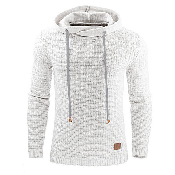 Men Warm Jacquard Hooded Sweatshirts Casual Solid Color Long Sleeve Sport Hoodies