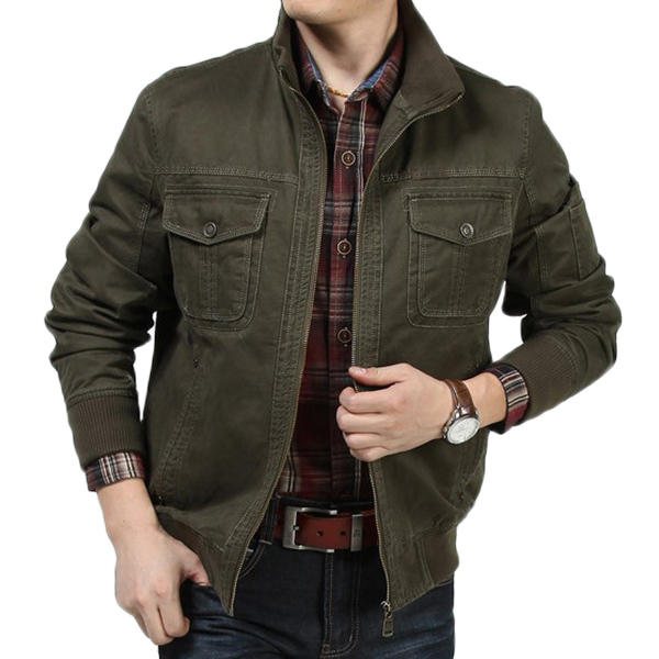 Mens Military Cotton Wearable Chest Pockets Zipper Outwear Jacket