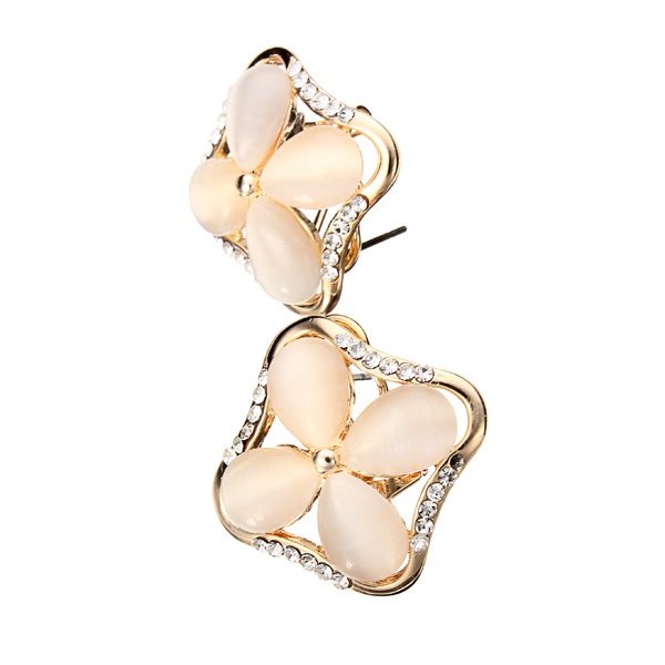 • Multicolor Crystal Square Opal Flowers Ear Stud Earrings Gold Plated