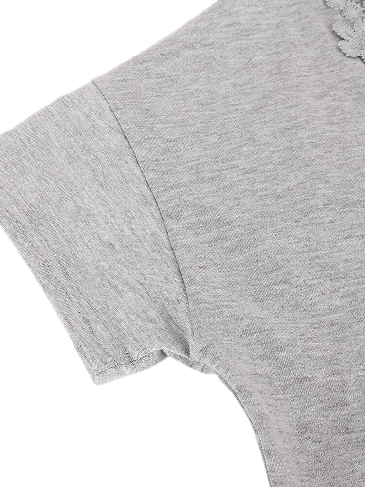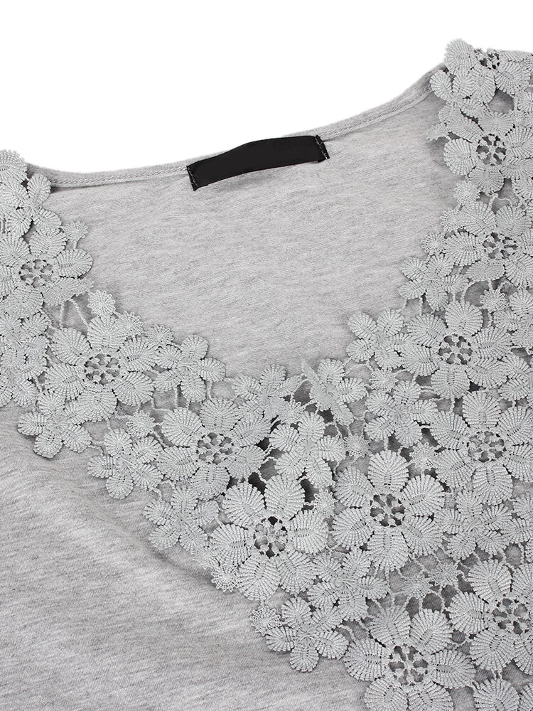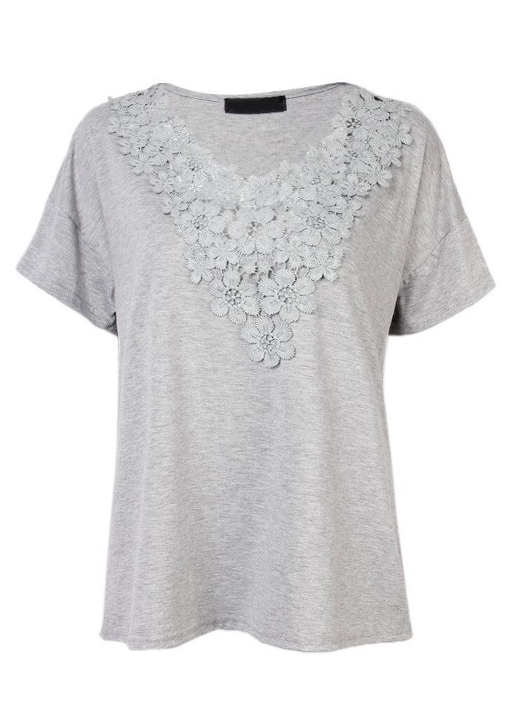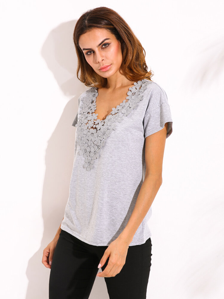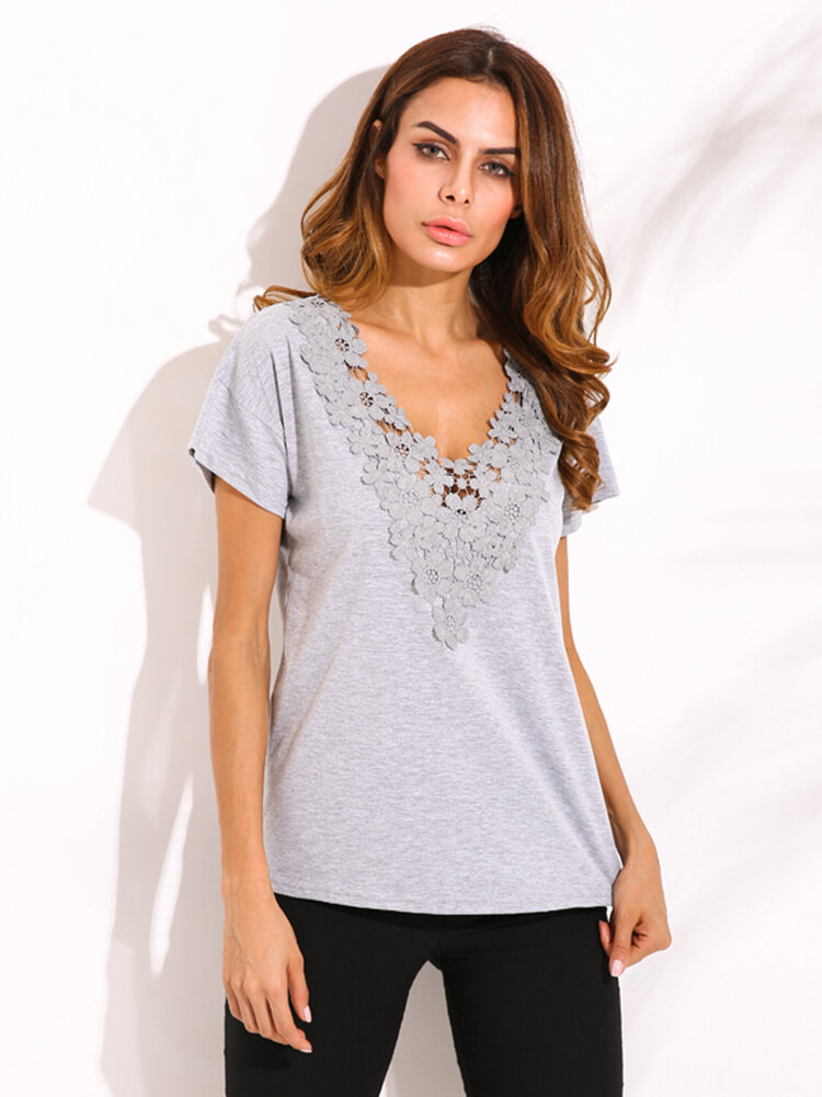 Plus Size S-5XL Women Sexy Crochet V Neck Top T-Shirt