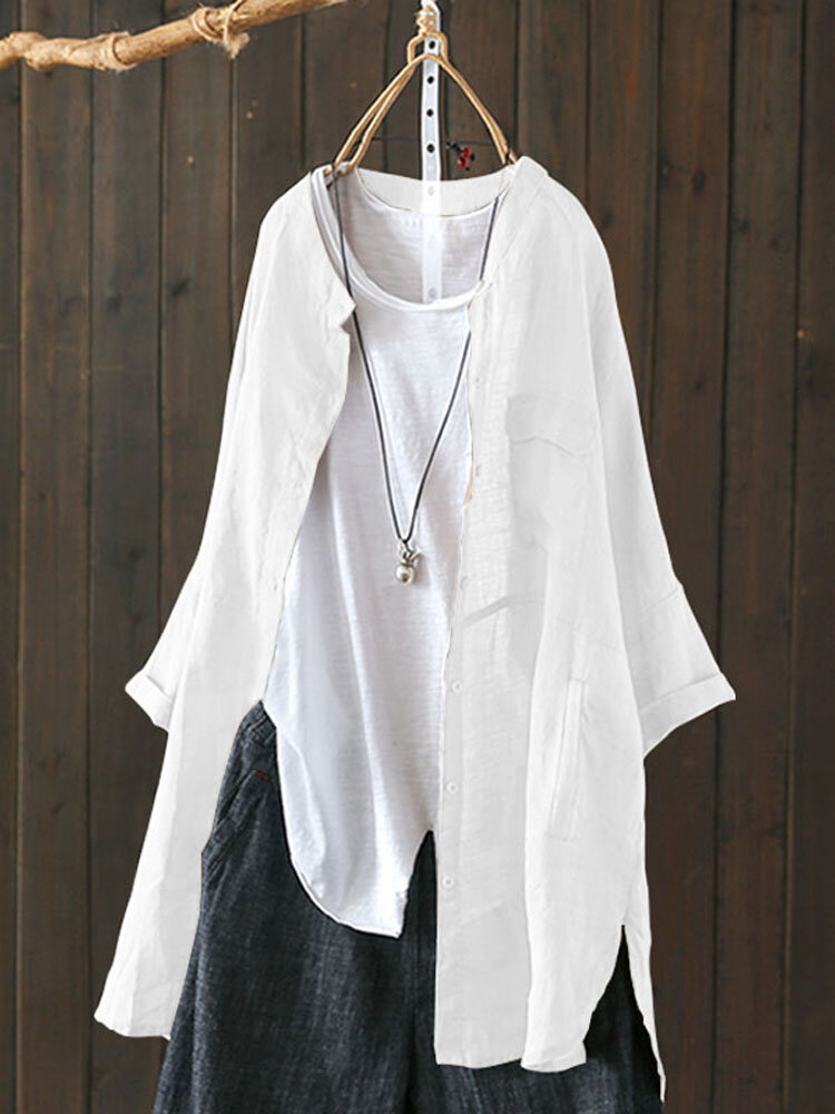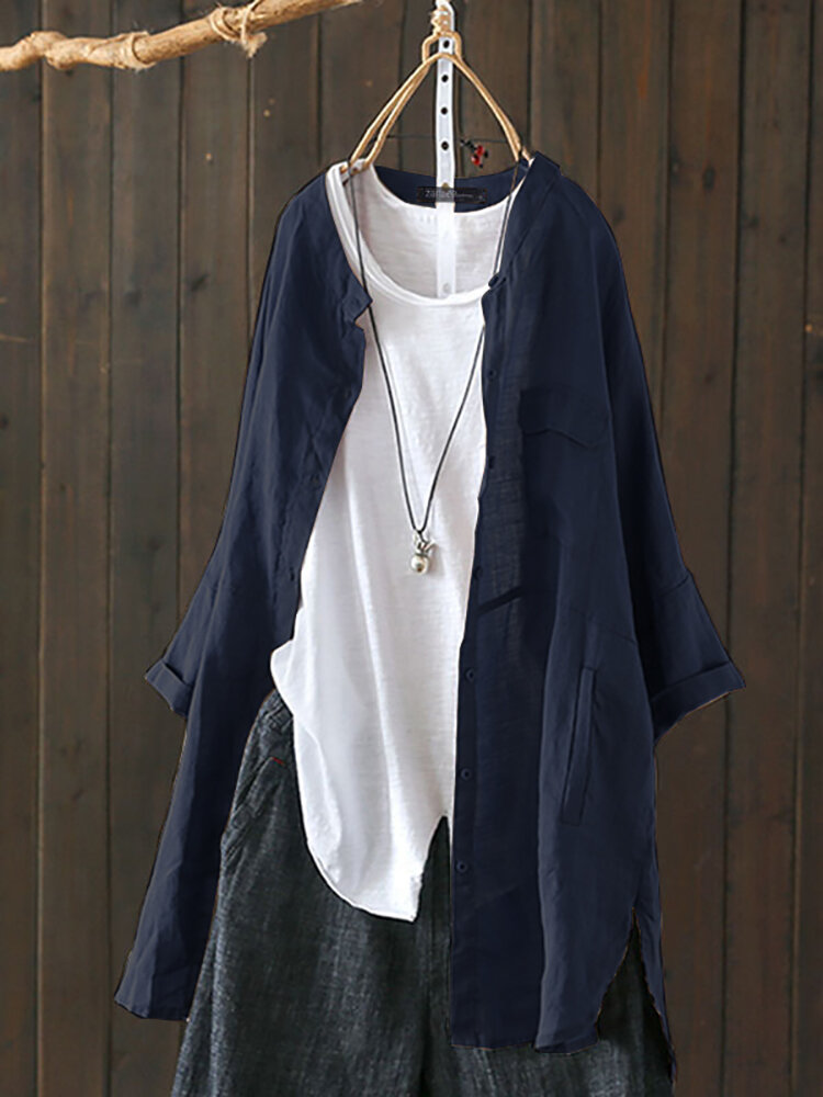 • S-5XL Women Long Sleeve Button Down Cotton Asymmetric Vintage Blouse