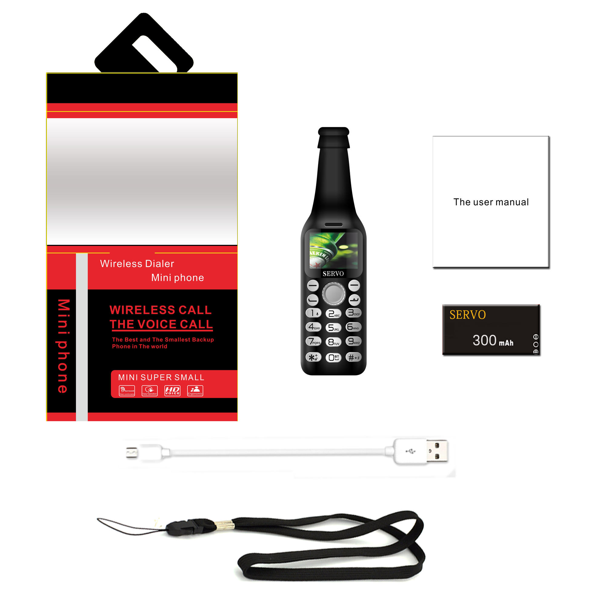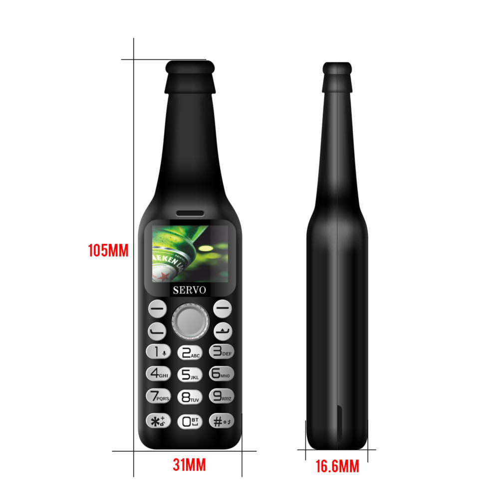 • SERVO V8 Fashion Bottle Phone 2.0 Inch 300mAh bluetooth Dialer HD Magic Voice One Key Recorder Dula SIM Card Dual Standby Mini Card Phone
