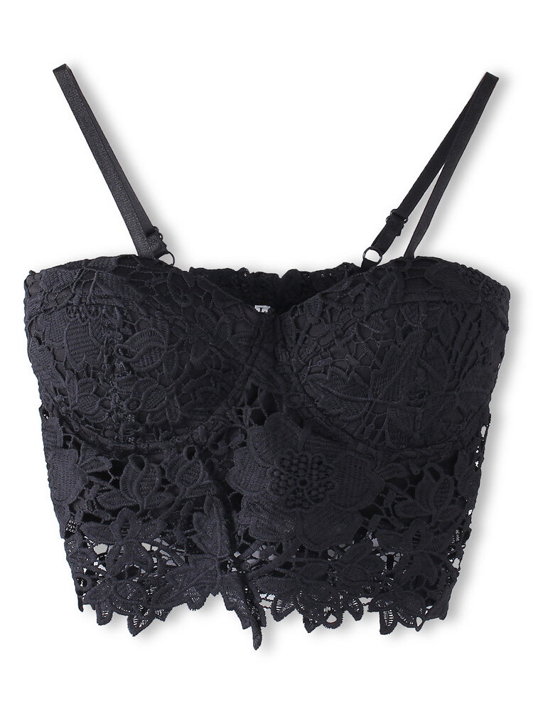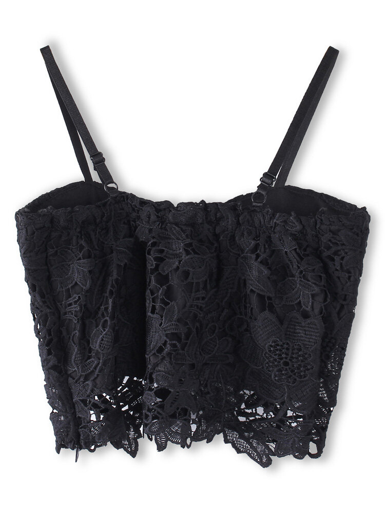 Women Sexy Black Lace Flower Mini Sling Camisoles Tank Tops