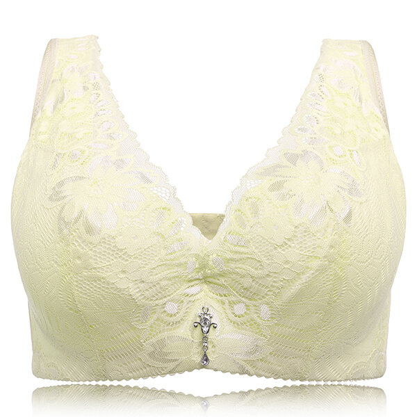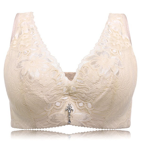 Sexy Lace No Pads Wireless Back Closure 4 Hook Fixed Straps Gather Bra