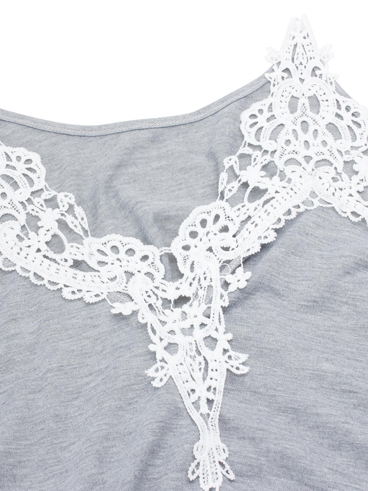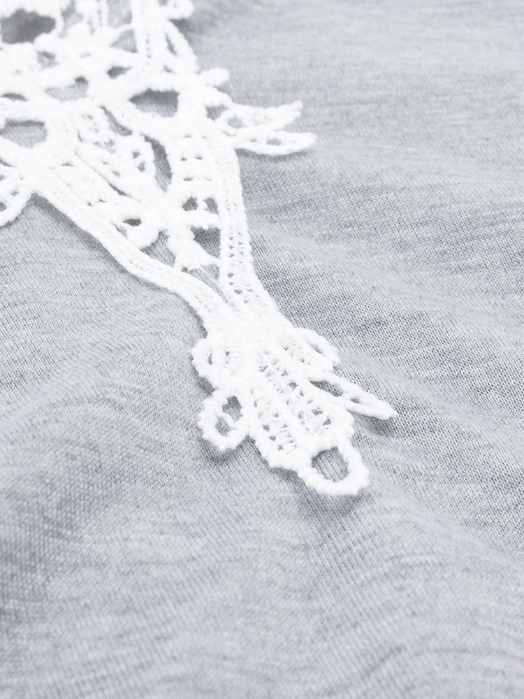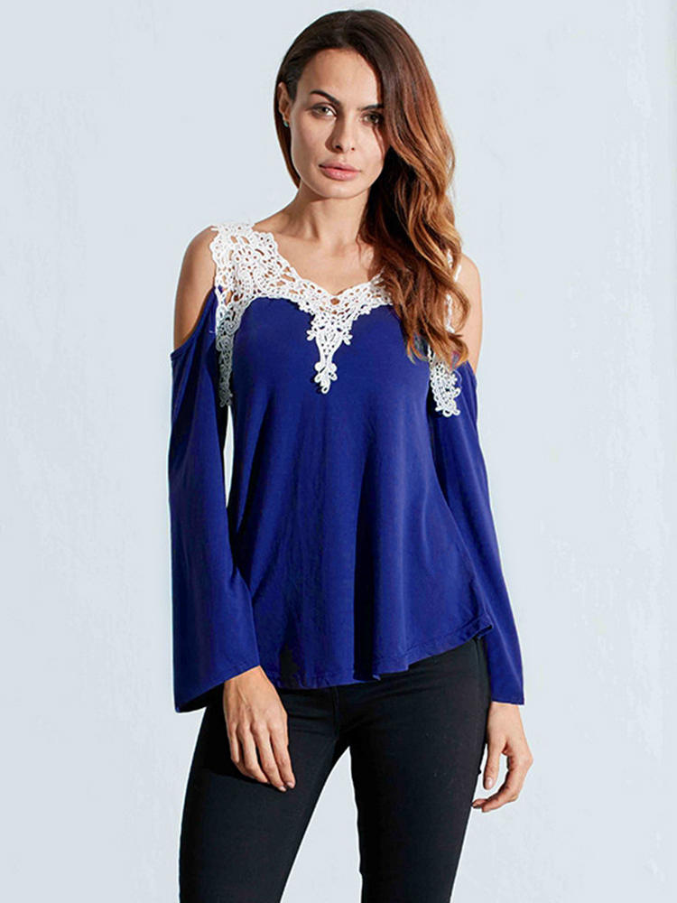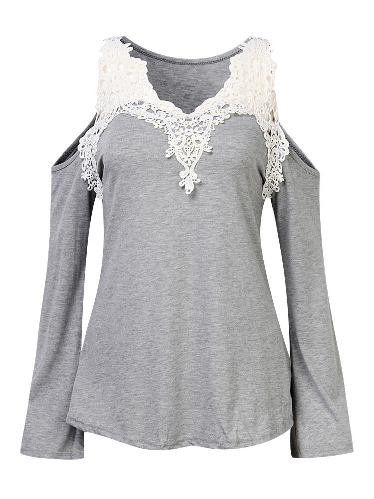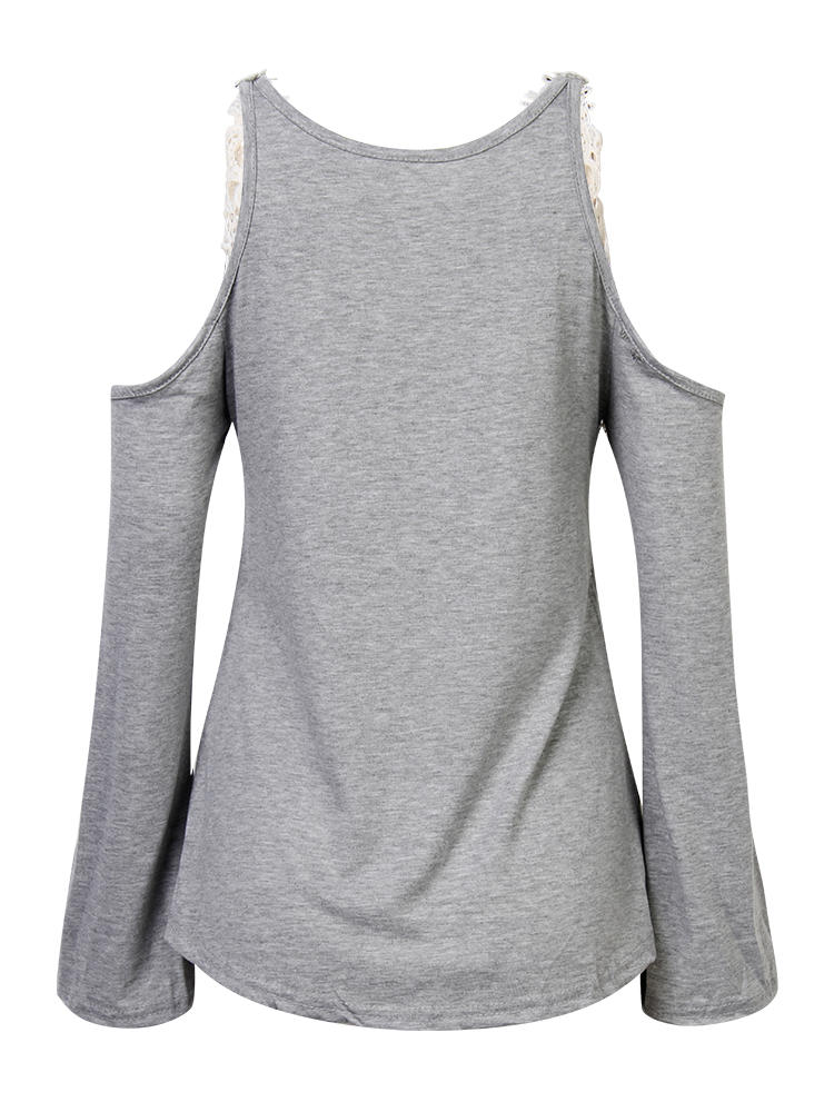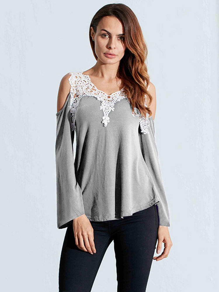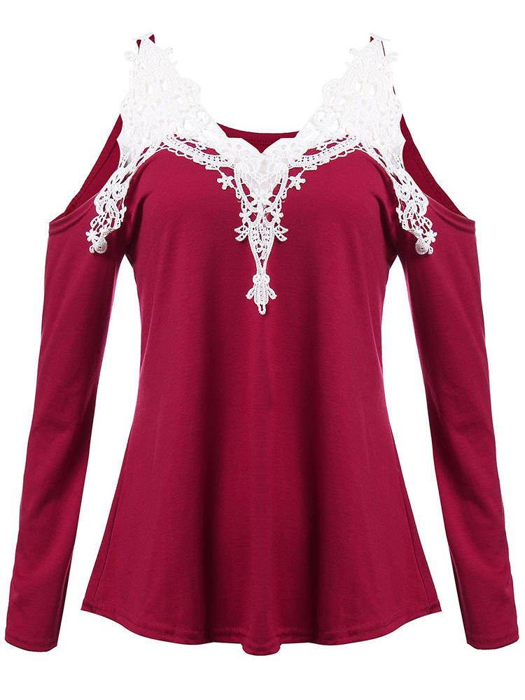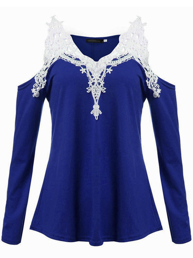 Sexy Women Lace Patchwork Hollow Crochet Off Shoulder Solid T-Shirt