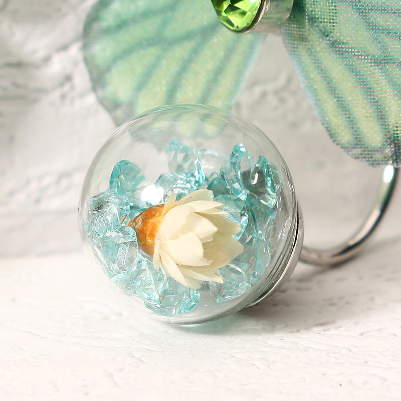 Material: Copper (Nickel free), Fabric, Natural Dried Flowers, Glass Ball, Rhinestone