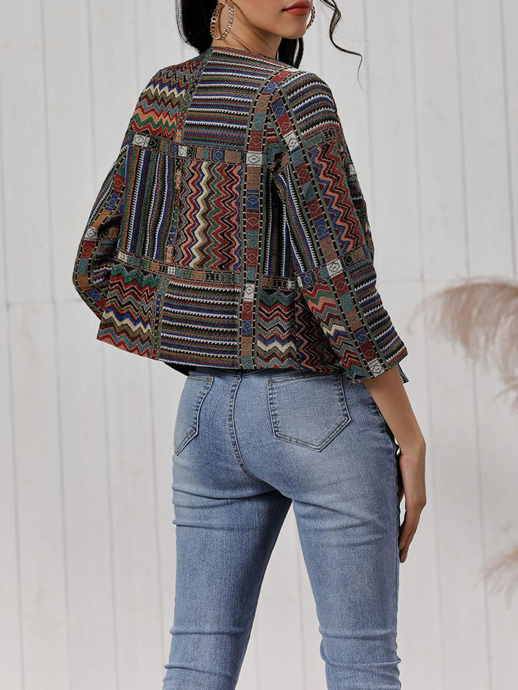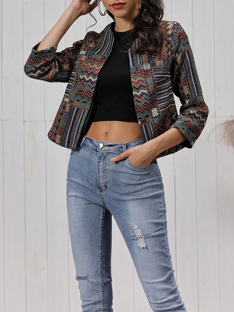Vintage Women Print Long Sleeve Coats