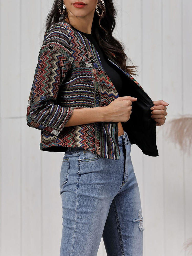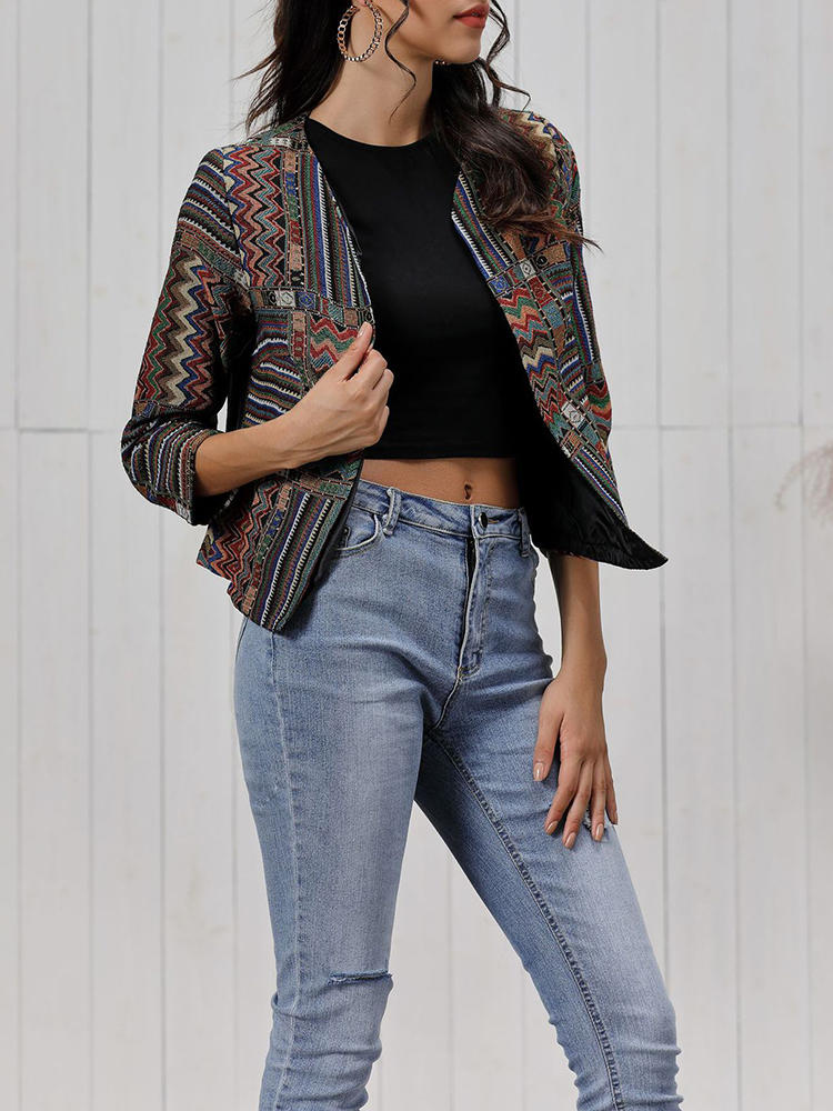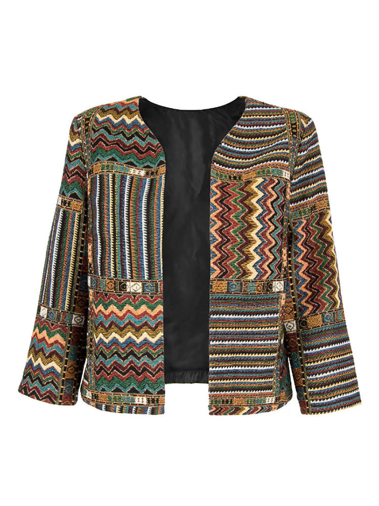 Vintage Women Print Long Sleeve Coats COD