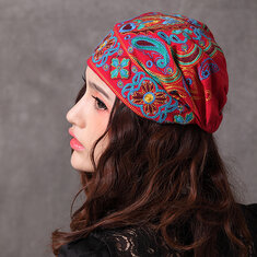 Women Navy Beanie Caps Ethnic Embroidery Skullcap Hat