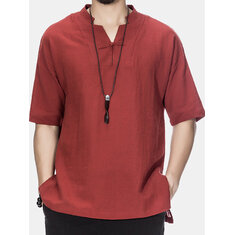 Men Chinese Style Cotton Linen Loose Short Sleeve T-Shirt