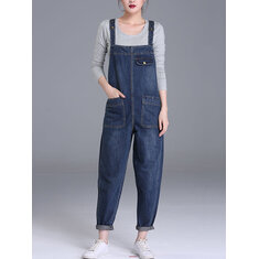 S-6XL Casual Women Denim Pockets Jumpsuit Playsuit