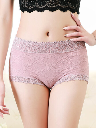 Plus Size Lace Floral Jacquard High Waist Cotton Briefs
