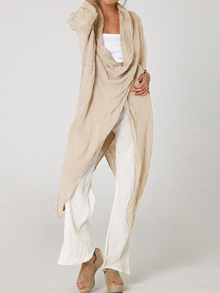Women 3/4 Sleeve V Neck High Split Irregular Hem Casual Shirt Blouse