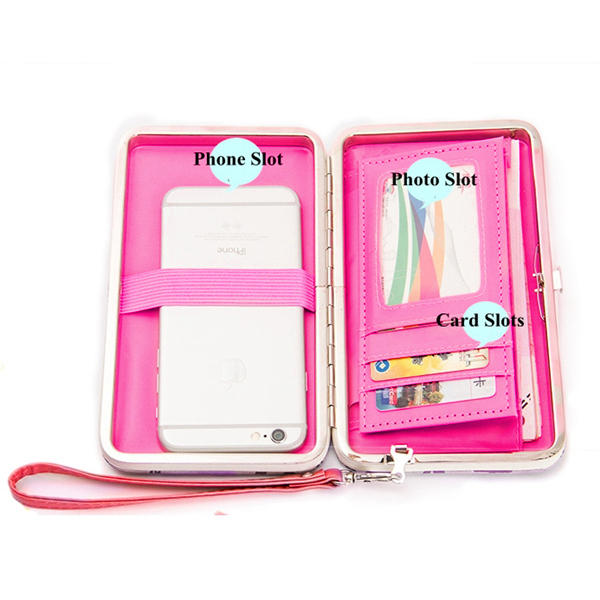 Women Candy Color Bowkot 5.5 Inch Phone Wallets Case Hasp Long Purse Clutches For Iphone Samsung COD