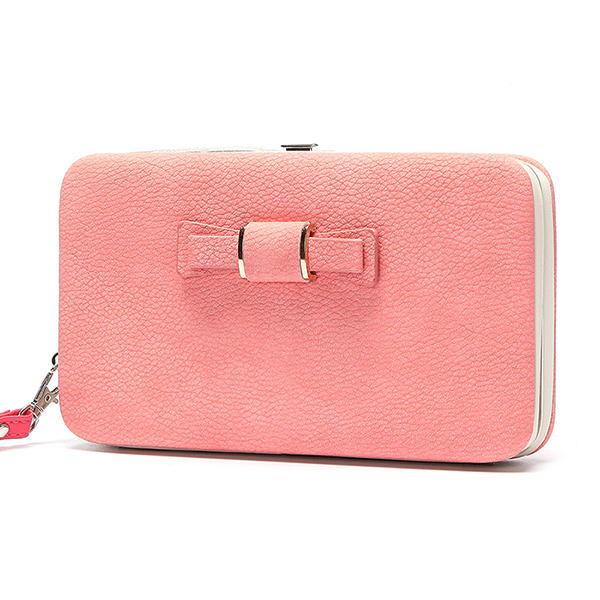 • Women Candy Color Bowkot 5.5 Inch Phone Wallets Case Hasp Long Purse Clutches For Iphone Samsung