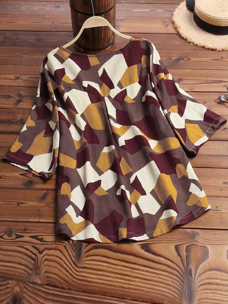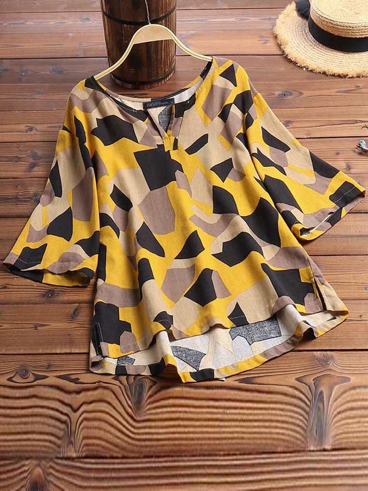 • Women Casual Printed V-Neck Short Sleeve Blouse