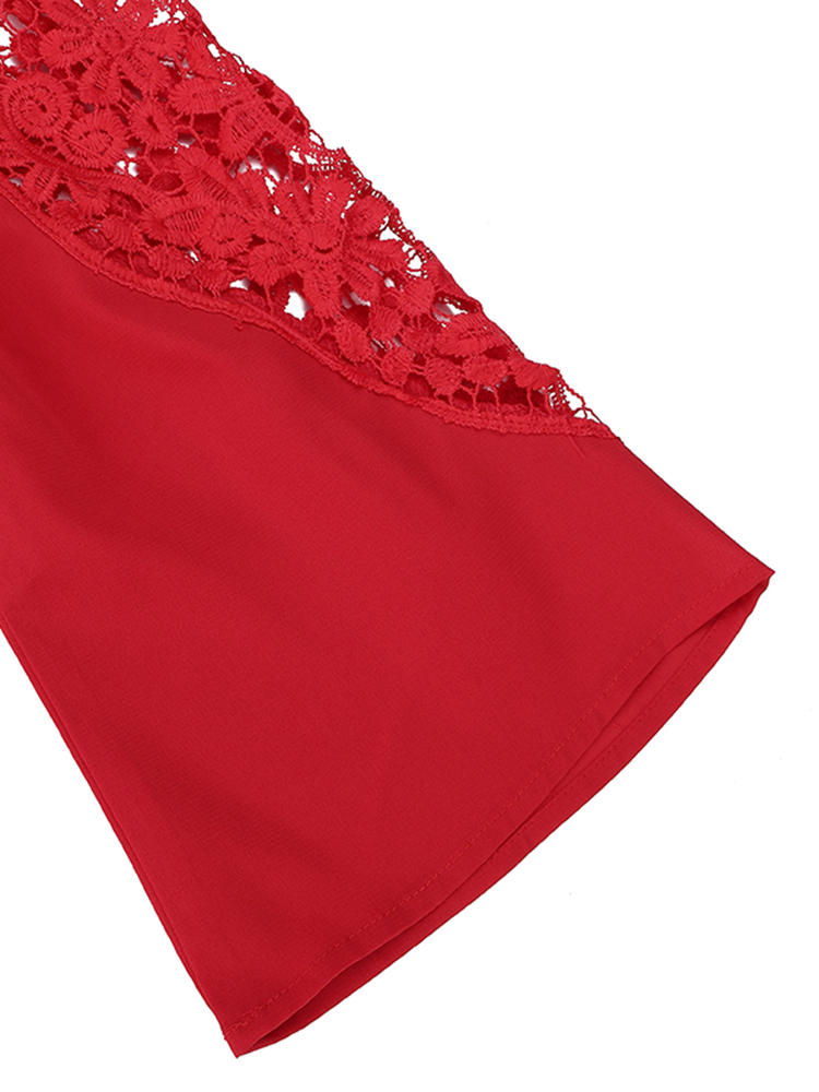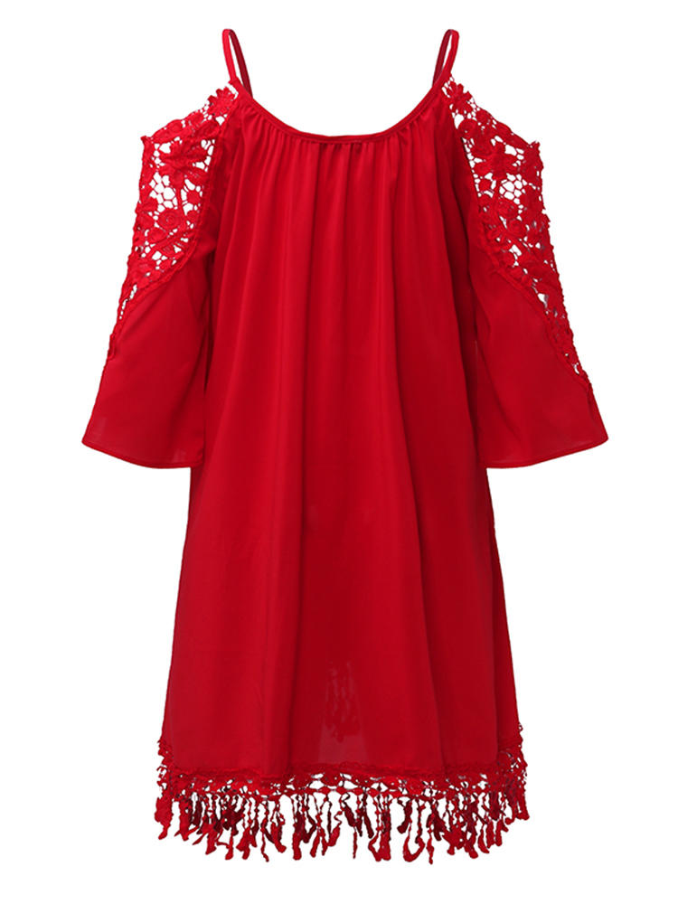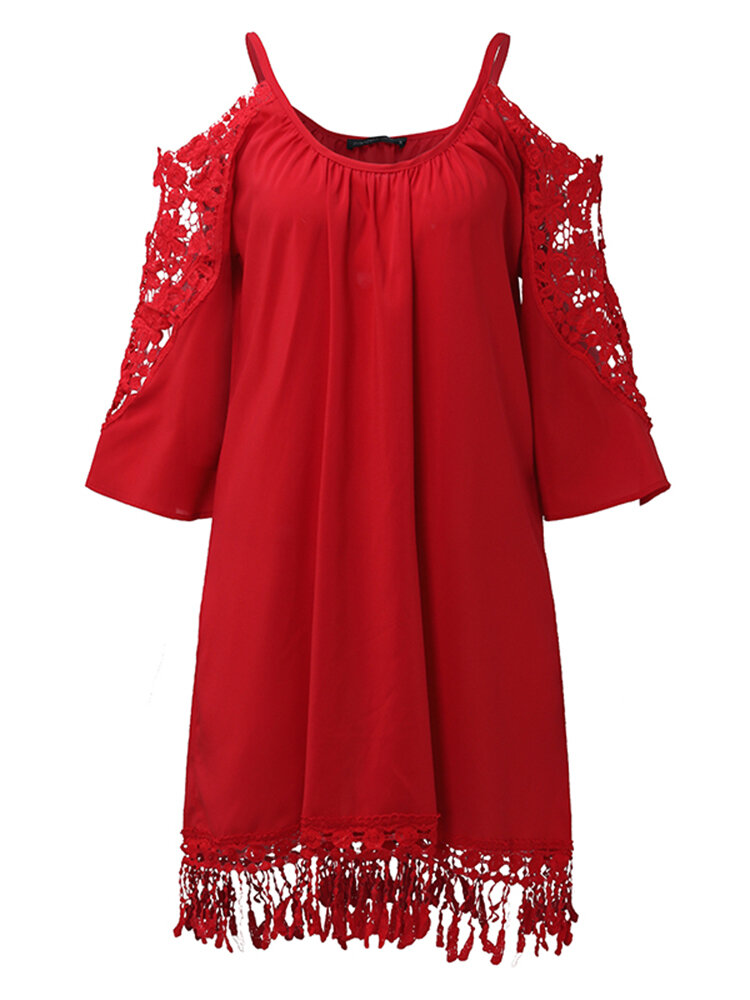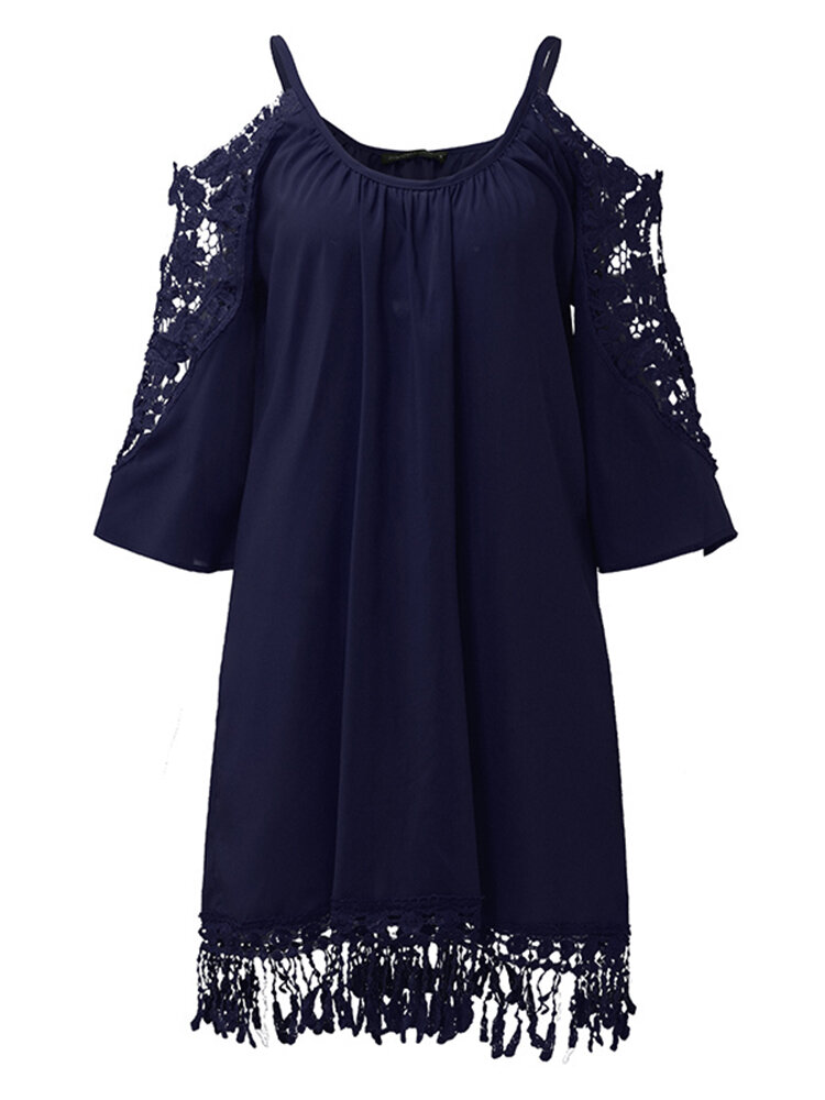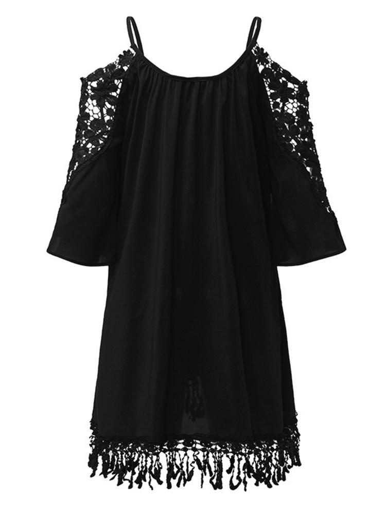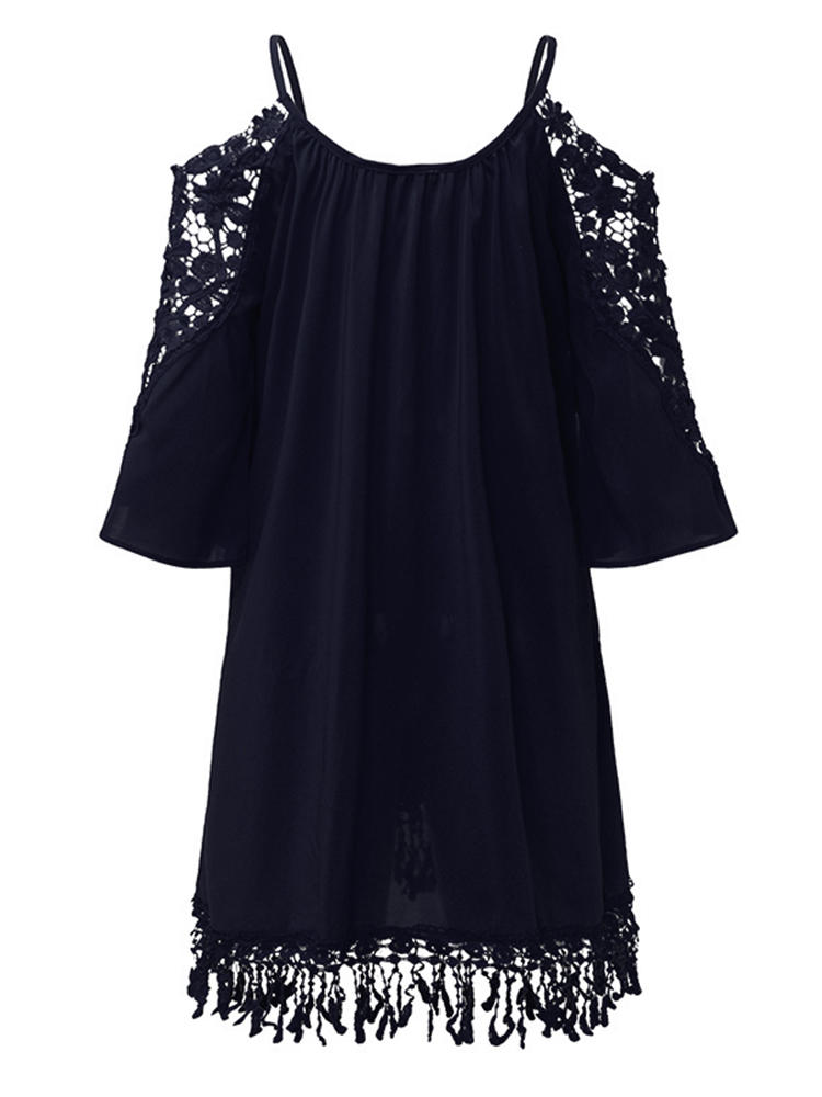 • Women Off Shoulder Lace Strap Hollow Half Sleeve Casual Mini Dresses