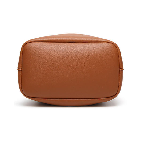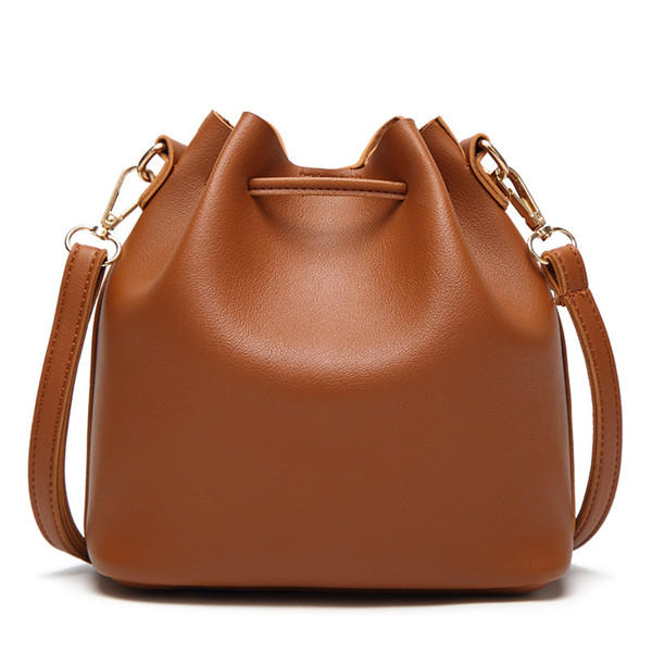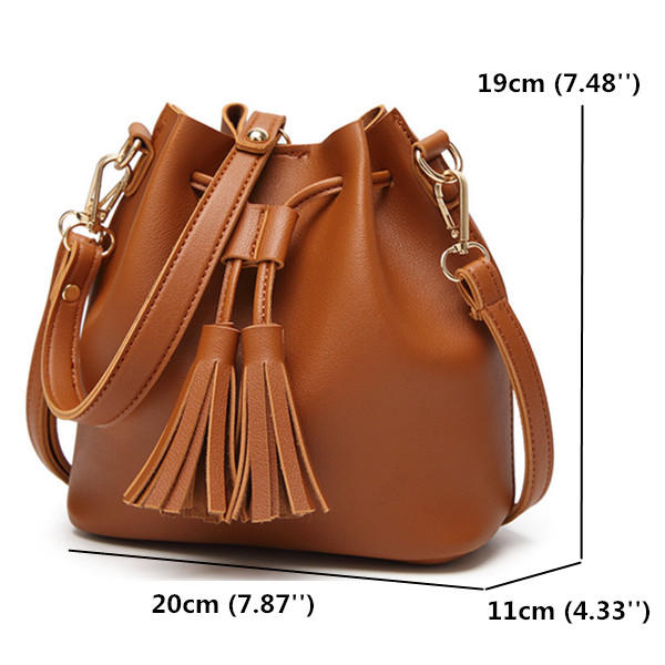 Women PU Leather Drawstring Bucket Bags Retro Tassel Shoulder Bags Crossbody Bags COD