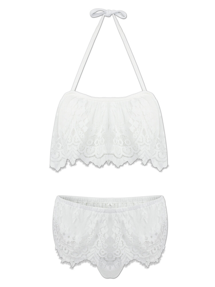 Women Sexy Ruffled Halter Push Up Lace Brazilian Bikini Set Low Waist Swimsuit