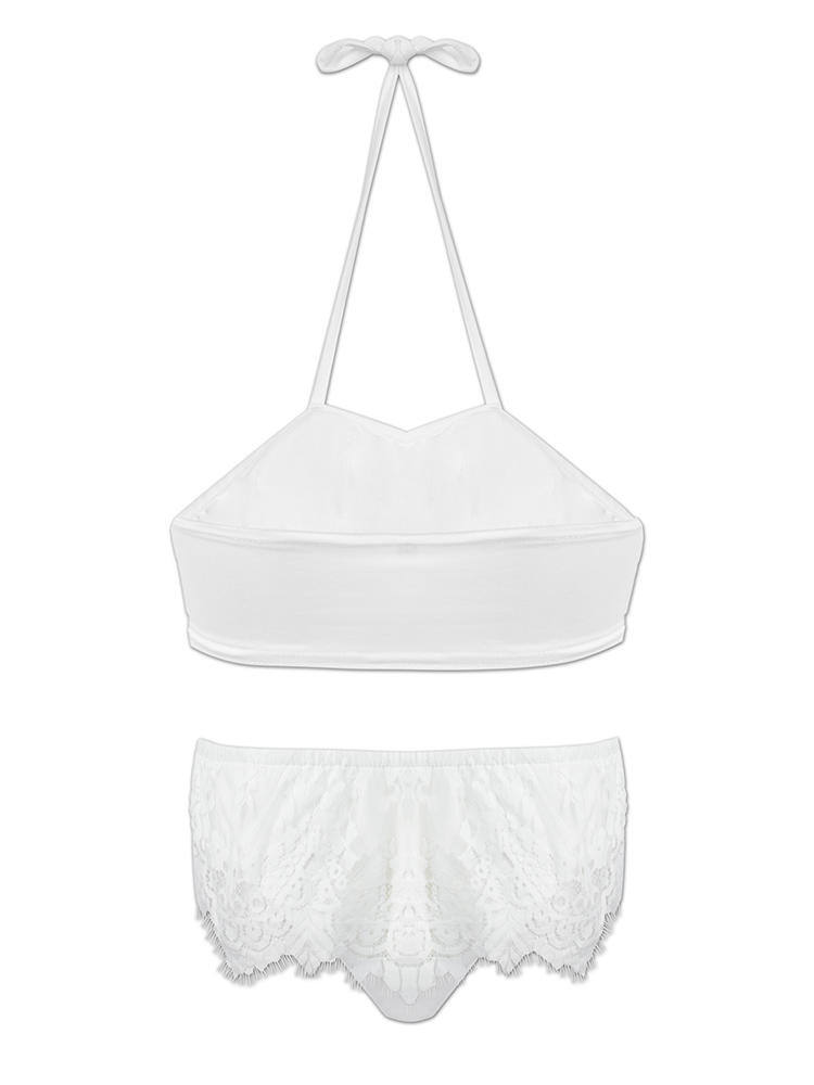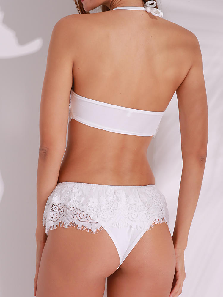 • Women Sexy Ruffled Halter Push Up Lace Brazilian Bikini Set Low Waist Swimsuit