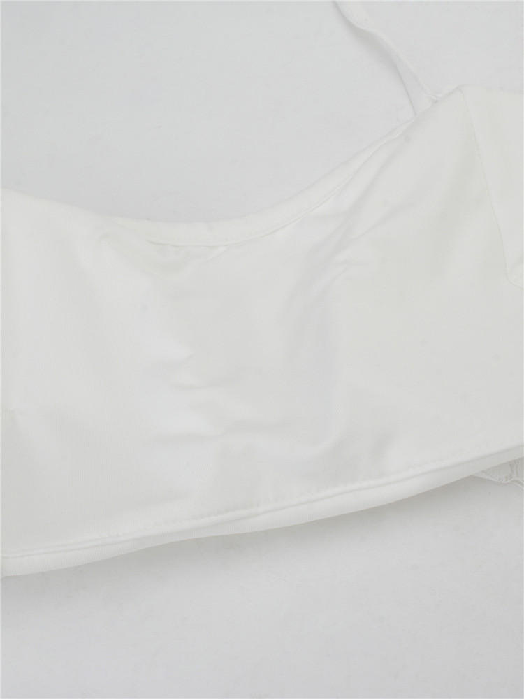 Women Sexy Ruffled Halter Push Up Lace Brazilian Bikini Set Pure Color Backless Low Waist Swimsuit B
