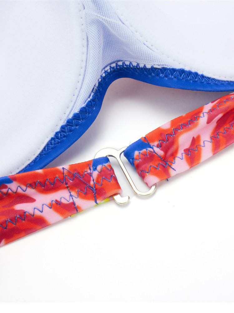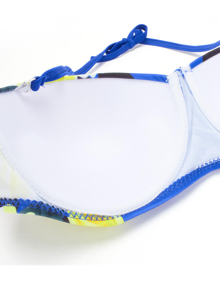 • Women Sexy Spaghetti Halter Strap Floral Printed High-Waisted Push Up Bra Bikini Set