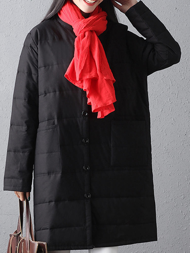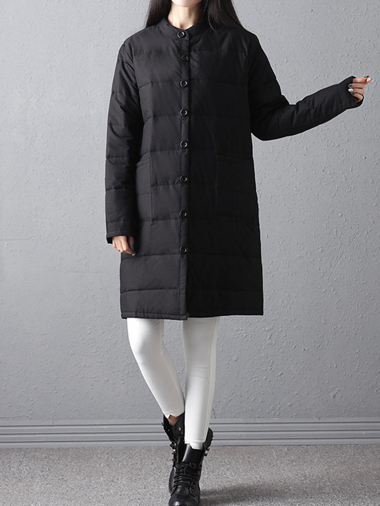 Women Winter Warm Black Long Sleeve Button Mid Long Coats COD